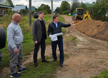 Ход работ проинспектировали глава Лежневского муниципального района Владислав Андреевич Парунов и глава Новогоркинского сельского поселения Алексей Сергеевич Левин. Они побывали на месте проведения строительных работ и пообщались с представителями подрядной организации.