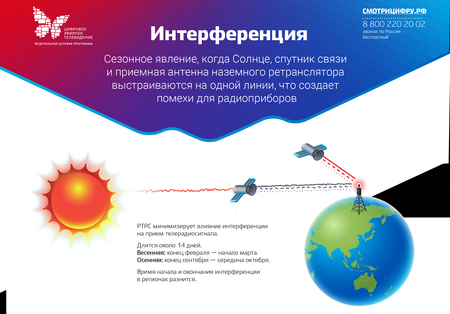 Тем не менее, нельзя полностью исключить вероятность кратковременного, длительностью не более 5 минут в сутки, «замирания»изображения, распада его на пиксели или, в редких случаях, кратковременного полного пропадания сигнала. Эти помехи будут носить исключительно кратковременный характер и, вероятнее всего, пройдут незамеченными. Важно понимать, что солнечная интерференция – это природное явление, не связанное с техническими неисправностями оборудования.