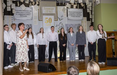 В завершении официальной части вечера с поздравительным словом к школе и педагогам обратились одиннадцатиклассники, они тепло поблагодарили всех тех, кто за эти 50 лет создавал и поддерживал уникальную атмосферу Лежневской школы № 11. А последним аккордом праздничного концерта прозвучала финальная песня, которую будущие выпускники исполнили вместе с директором школы Ольгой Валентиновной Вьюгиной.
