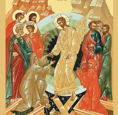 Икона Воскресения, одна и та же как в праздник Пасхи, так и во всякий воскресный день, говорит об этом ясными зрительными образами: Христос поднимается из царства тьмы и ведёт нас за Собою, буквально руководит нами. Мы идём к Небу своими ногами, с усилием, терпением и упорством, ни на минуту не оставляя при этом Его спасительной руки.