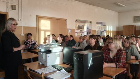 После этого родители будущих выпускников поднялись на третий этаж в одну из аудиторий, где проходят экзамены. О том, как проходит подготовка к проведению экзаменов, рассказала директор Лежневской школы № 11 Ольга Валентиновна Вьюгина. Она заверила собравшихся в том, что в школе создают все необходимые условия, чтобы школьникам было комфортно во время экзаменов. Кабинеты в обязательном порядке проветриваются, организован питьевой режим, а на случай непредвиденных ситуаций в школе дежурит медик.