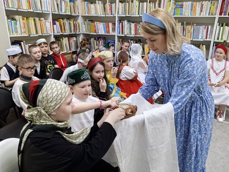 В детском отделе библиотеки О. Е. Питателева и Е. Н. Смирнова провели для третьеклассников увлекательную викторину о народах России. А ребята, которые не без помощи родителей основательно подготовились к этому мероприятию, стали участниками дефиле костюмов разных национальностей, проживающих в нашей стране. Также школьники прочитали стихи о дружбе, спели песни, показали сценку и поиграли в весёлые игры. А завершилось мероприятие дружным чаепитием.