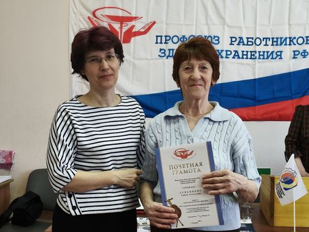 Конференция началась с приятного момента. Правовой инспектор центрального комитета профсоюза работников здравоохранения Светлана Витальевна Шепелева вручила почётные грамоты Ивановской областной организации профсоюза работников здравоохранения за многолетний труд и верность профсоюзу заведующей Воскресенским ФАПом, фельдшеру Нине Ивановне Гаманиной, фельдшеру Воскресенского ФАПа Наталье Ивановне Рыбаковой, медицинской сестре поликлиники Татьяне Васильевне Бузуновой, участковому врачу терапевту поликлиники Ольге Владимировне Солнцевой, лаборантам клинико-диагностической лаборатории Любови Анатольевне Лукьяновой и Галине Алексеевне Брыксиной.